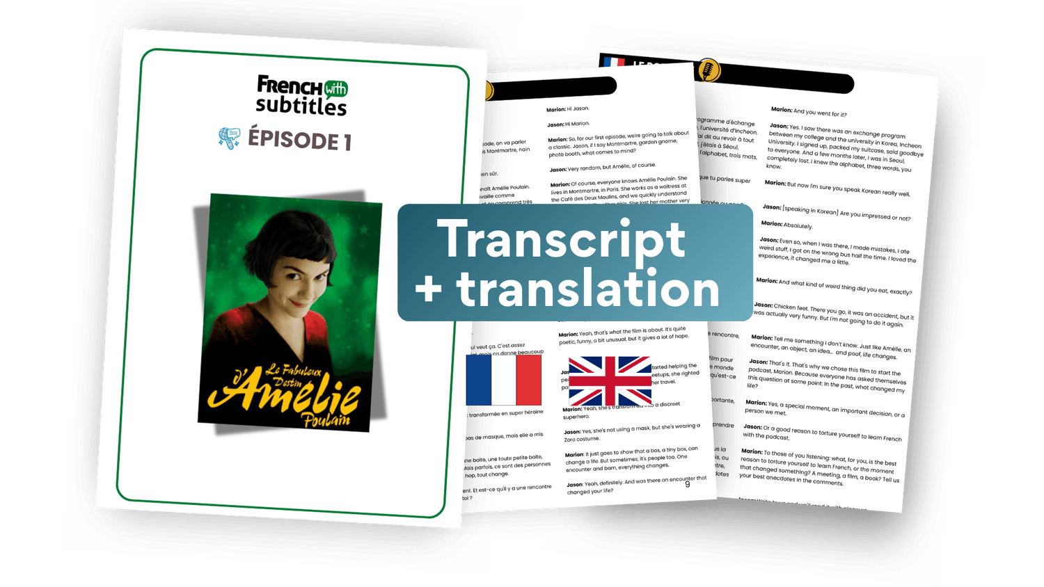 Télécharge la transcription de l'épisode 1 du Podcast French With Subtitles gratuitement et apprends de nouveaux mots grâce à l'épisode.