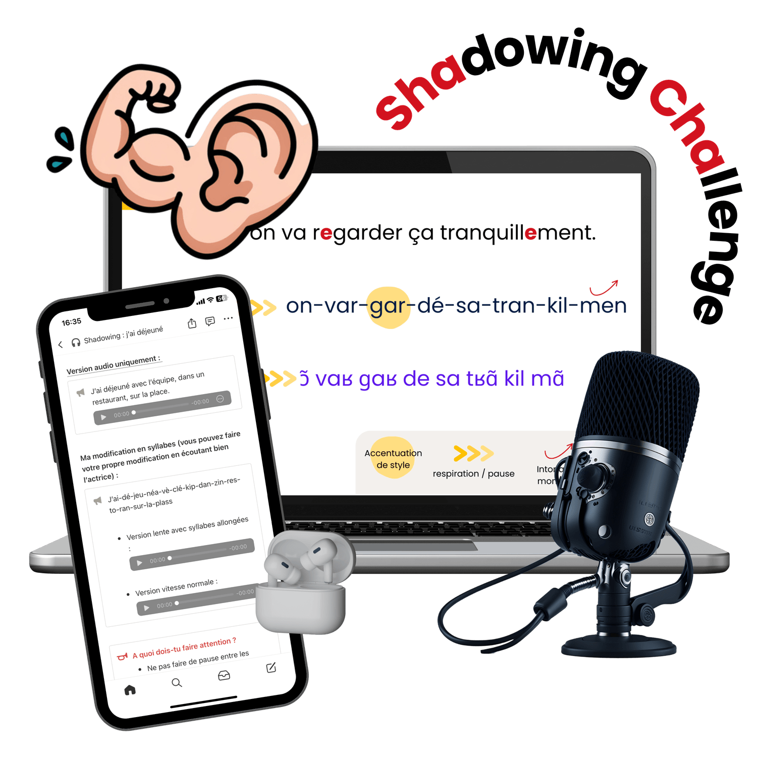 Comment fonctionne le challenge ? Le challenge est composé de 15 défis de shadowing à réaliser sur 30 jours. Chaque défi est guidé, et tu obtiens des audio, des découpages syllabiques et la possibilité de recevoir un feedback sur tes enregistrements dans la communauté.