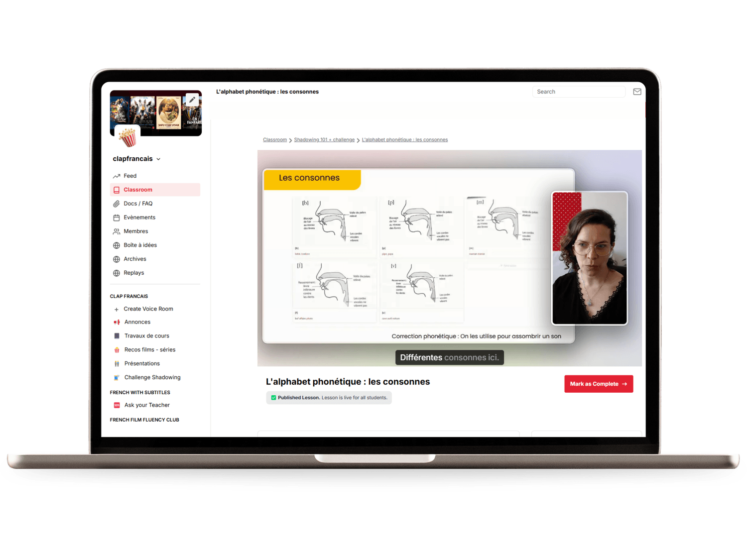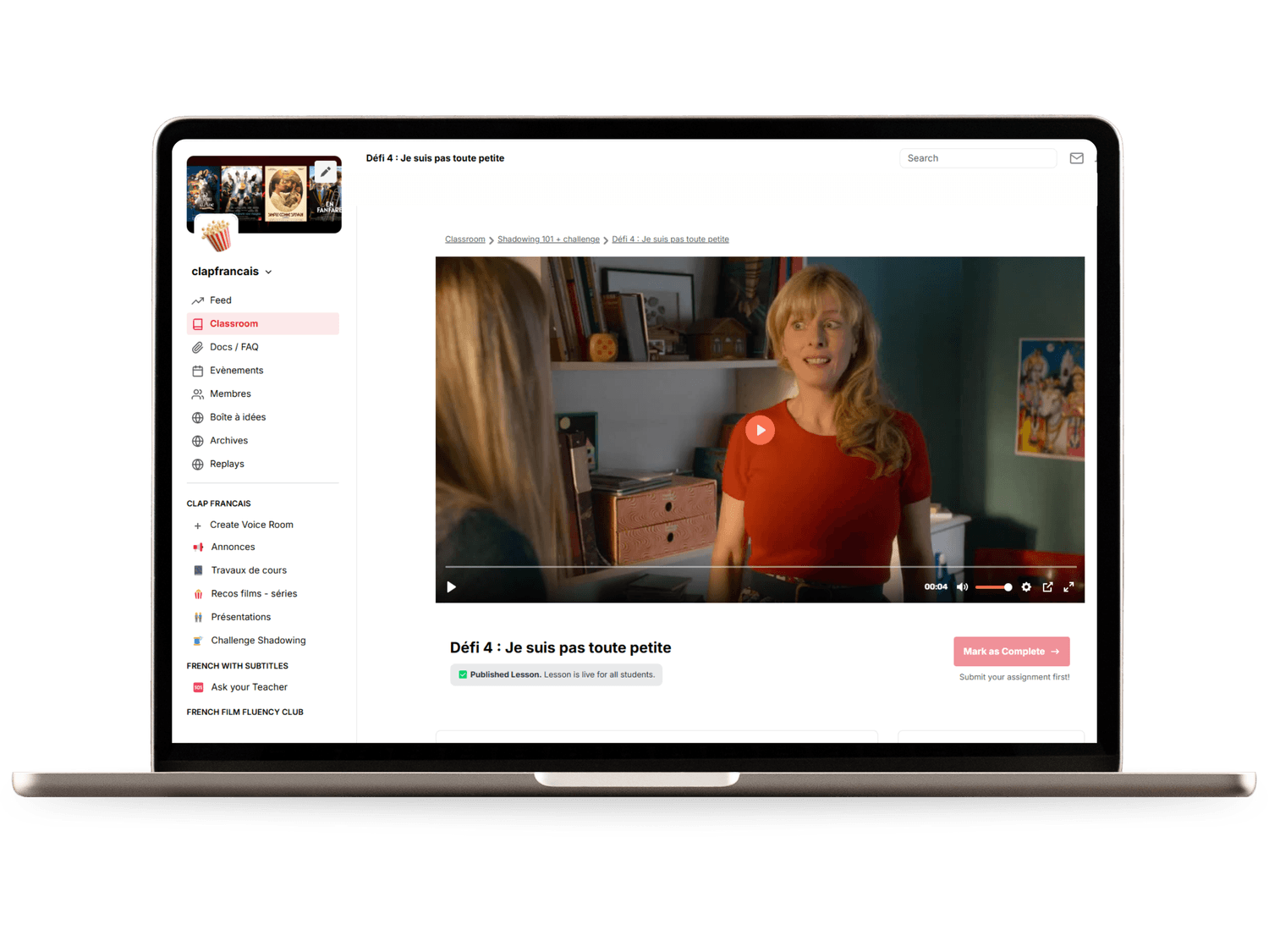 Réservée aux étudiants de Clap Français, pour progresser à plusieurs et échanger sur tes challenges dans un "safe space"