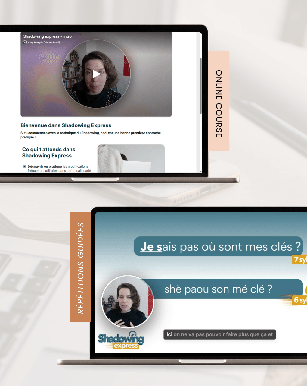 C'est une technique où tu écoutes une phrase en français et tu la répètes de la même façon. Dans ce mini-cours, tu travailles avec 10 phrases que j'ai soigneusement préparées et enregistrées pour cibler les difficultés du français parlé. Ça force ton cerveau à traiter le français à vitesse réelle.